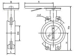 手柄衬氟对夹蝶阀--主要外形和连接尺寸: