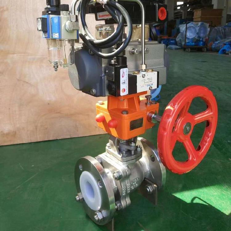 Q641F46 气动衬氟球阀系衬氟阀门系列中的一种产品,采用氟塑料作为内衬,并配之以新型的带杆球体结构,再加上其独特的弹性唇式密封座结构,使其具有普通球阀的各项优点,能在大压差和较大的温差变化范围内具有高密封性能和低操作扭矩。可作91黄瓜视频污或调节之用,本产品适用于各种工业管道中液体和气体的输送(包括蒸气),在各种酸、碱、盐类等强腐蚀性介质中均能很好地工作。